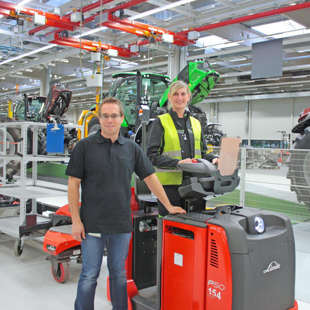The challenge and the solution was that the Factory Train load trains could transport different trolleys without any modification effort. Michael Götz, Warehouse Manager at Same Deutz-Fahr Deutschland GmbH, is absolutely convinced by the Factory Train load trains: “By using the Factory Trains we were able to significantly increase our efficiency. We can deliver more parts in less time. We have less forklift traffic in out assembly hall. We were able to reduce the traffic by approx. 75 percent. This means, that the safety for our employees has increased significantly and the transport damages that we used to have in the past have decreased significantly due to the use of the Factory Trains".