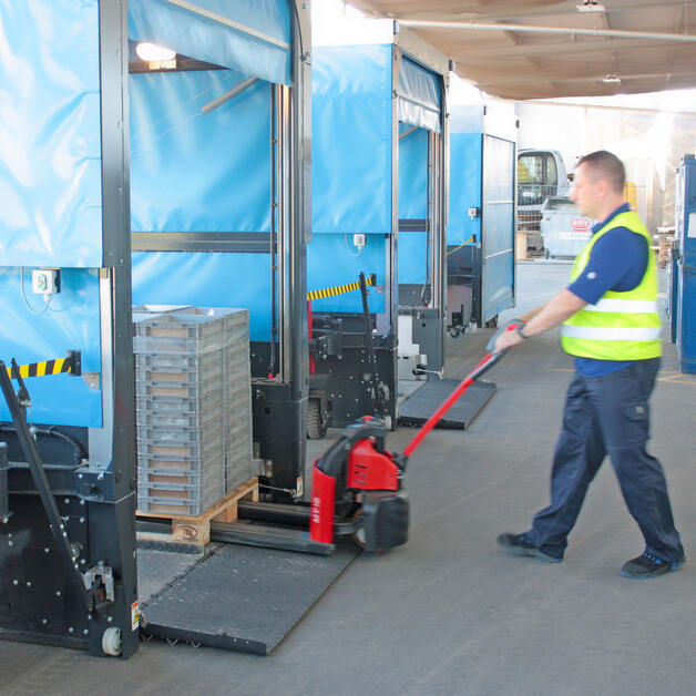 • Automatische Schlepperverriegelung bei abgesenktem Warenträger